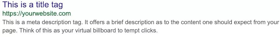 你网站上的每个页面都应该有一个独特的元标题和描述。它们是出现在谷歌搜索结果中的HTML标记: