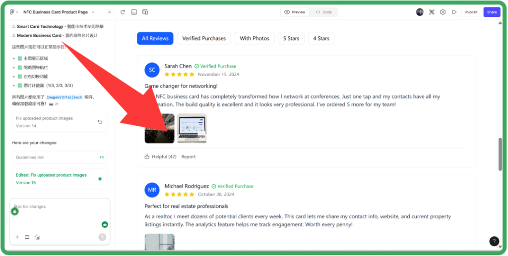 在网站流量中,移动端占比常年过半,尤其是来自发展中国家的采购商。如果在Prompt和设计阶段不强调Mobile-first,手机端可能出现模块佣金和错乱。