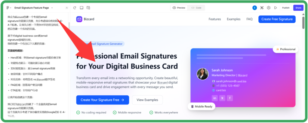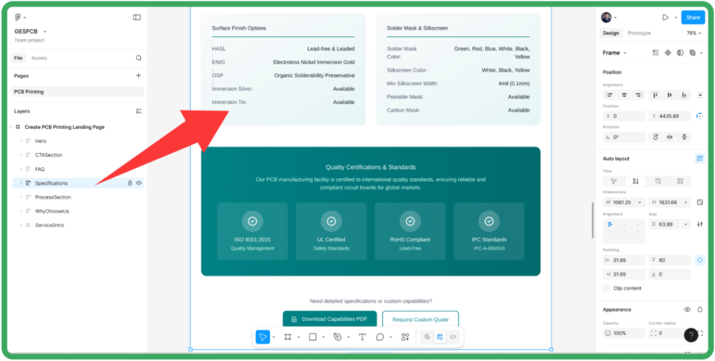 我会在指令里提前给出我想要的Section顺序,例如:Hero、Trust badges、Product features、Projects/Cases、Certifications、FAQ、Contact form等页面模块。