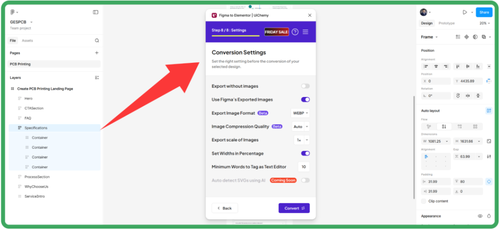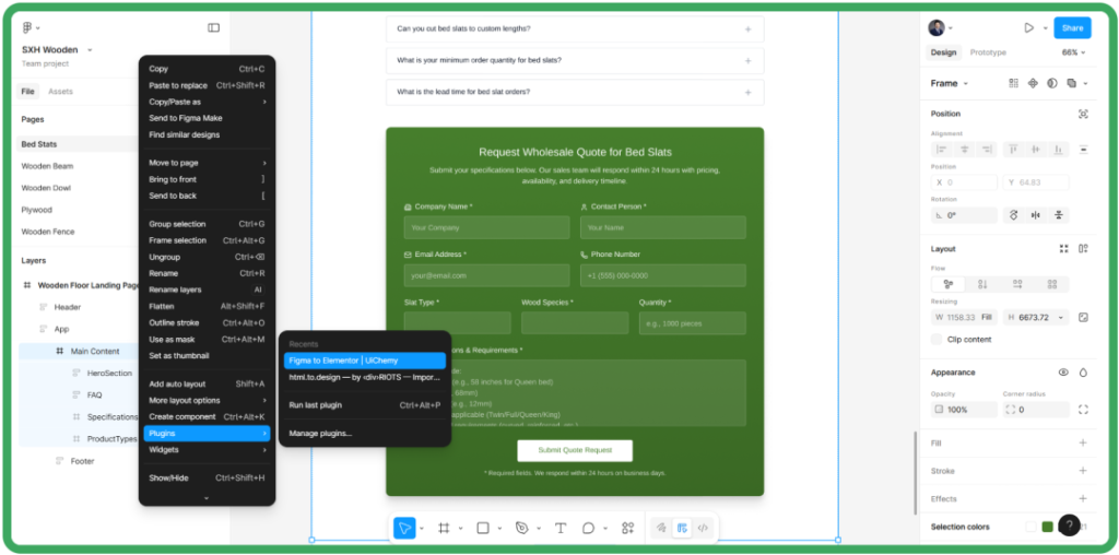 确认原型没问题之后,我会开始用UiChemy插件,把Figma设计一键搬到WordPress网站。具体流程如下:
