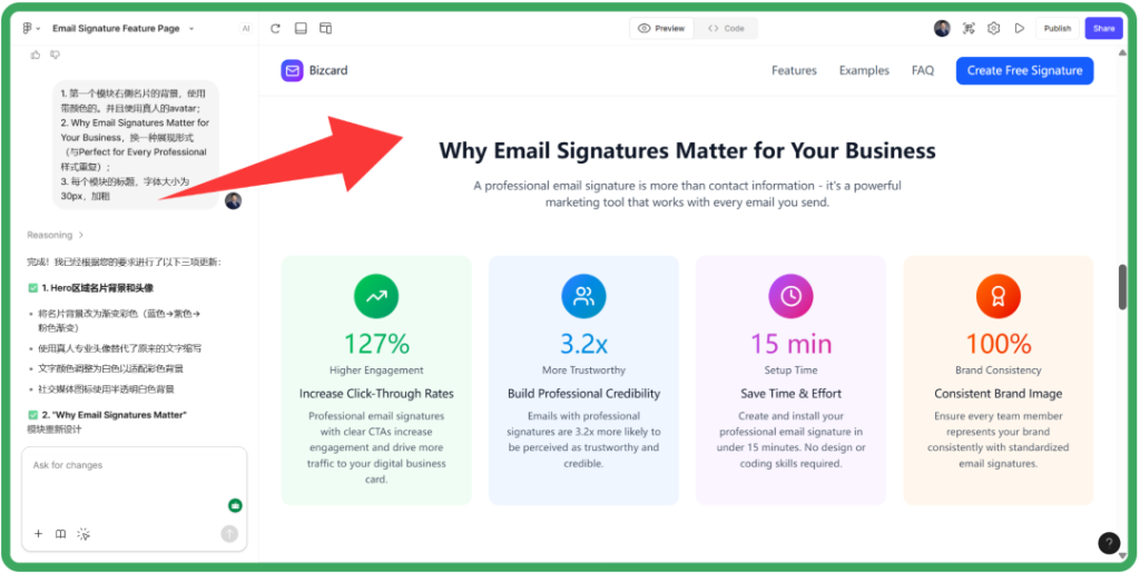 这种能力,对外贸SEO尤其友好:Figma Make帮我做可视化和结构调整,避免内容堆成大段文本、影响用户停留时间和转化率。