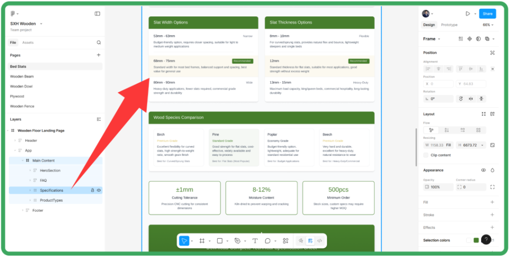 Make生成初稿后,不要急着导出,而是在Figma内,对页面做一次结构和语义标签的梳理,这一步将会保证后续的SEO和导出质量。