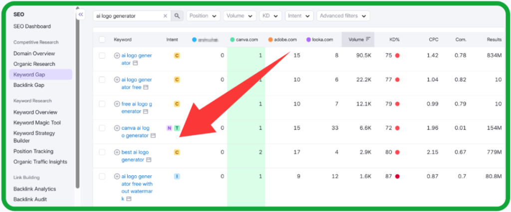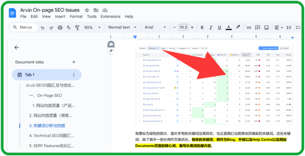 不同于常规关键词挖掘,On-page优化时,我会更加注重与竞对网站相比,哪些关键词仍然存在较大排名空间。